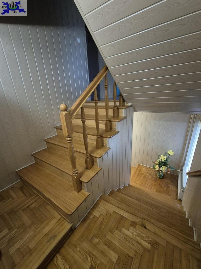 Drewniane schody prowadzą na użytkowe poddasze, na którym znajdują się