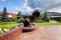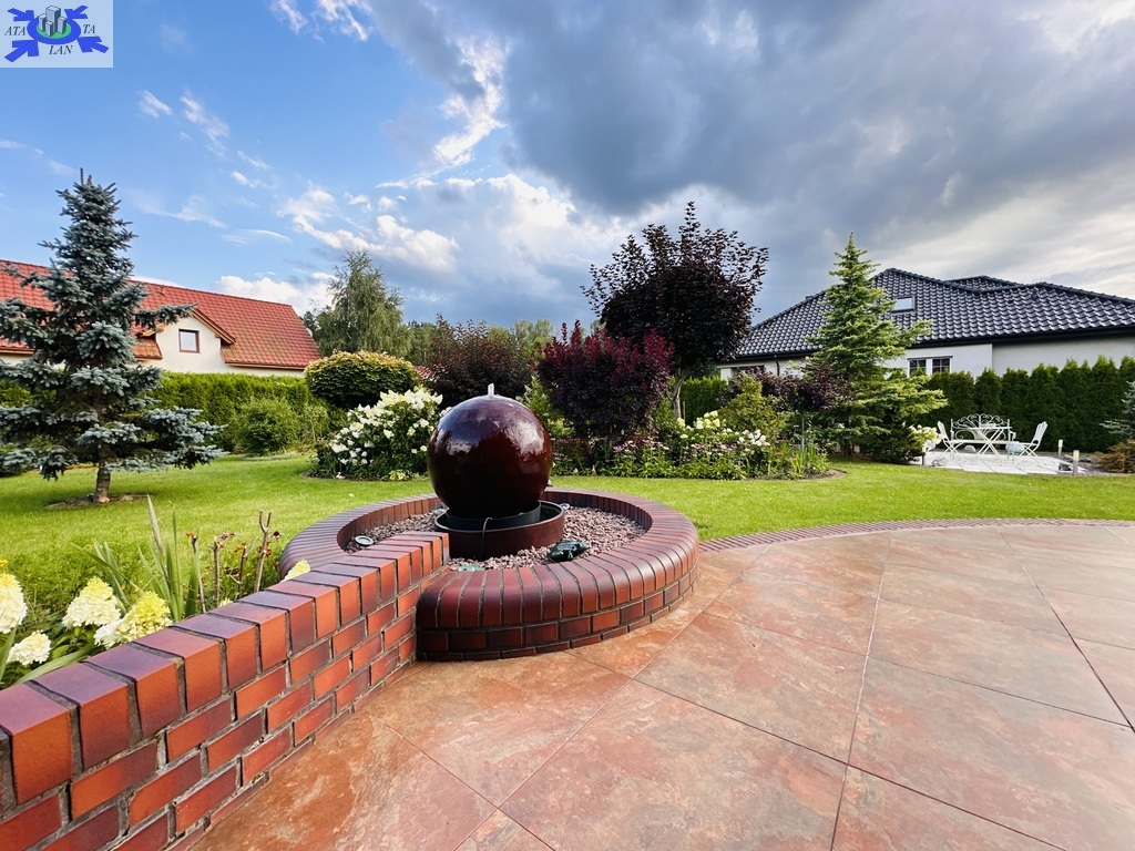 Pięknie zagospodarowany ogród o powierzchni 1400 m2 z oryginalną architekturą ogrodową pergolą, fontanną, drewnianą altaną z antresolą , tarasem rekreacyjnym.