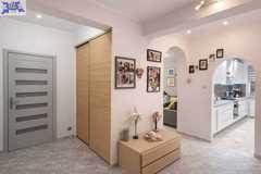Bardzo duży, przestronny korytarz z szafą w zabudowie