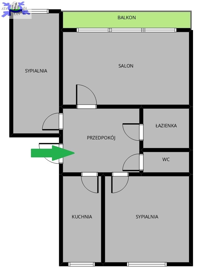 - salon z bardzo dużym i słonecznym balkonem na całą szerokość pomieszczenia