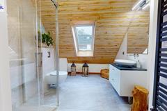 - łazienka z oknem, wykończona z włoskich materiałów (gres Atlas Concorde)
