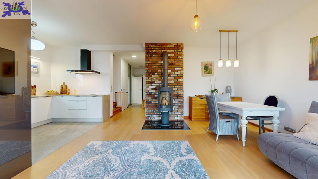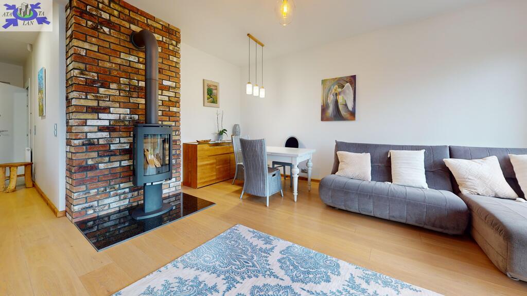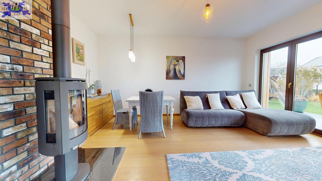 - przestronny salon z kominkiem typu koza firmy Jotul oraz z wyjściem na taras