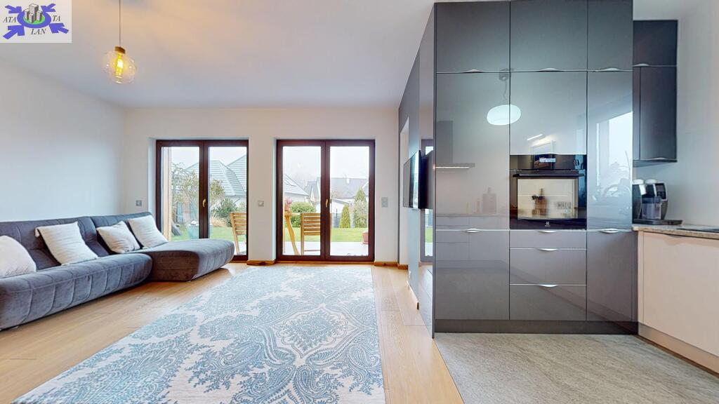 Działka w pełni zagospodarowana z nasadzeniami, trawa z rolki, system nawadniania Rain Bird oraz robot koszący Husqvarna. Na działce domek gospodarczy ze składzikiem na drewno opałowe, drewniana huśtawka wykonana na zamówienie, oraz sauna wolnostojąca.