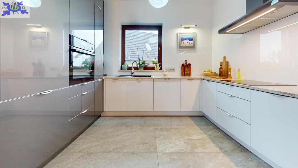 - otwarta kuchnia w pełni umeblowana, wykonana z materiałów firmy Eger, blaty z kamienia naturalnego - granit,