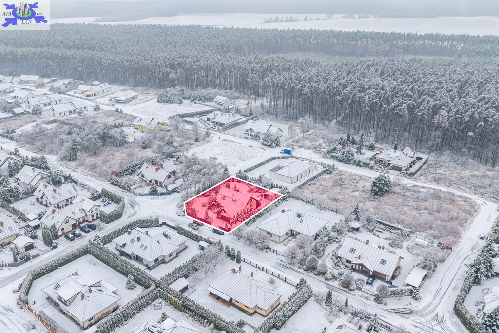 Dom o powierzchni użytkowej ok. 215 m2, w sąsiedztwie lasu i bliskiej odległości od jeziora Miedwie, położony na działce o powierzchni 1209 m2.