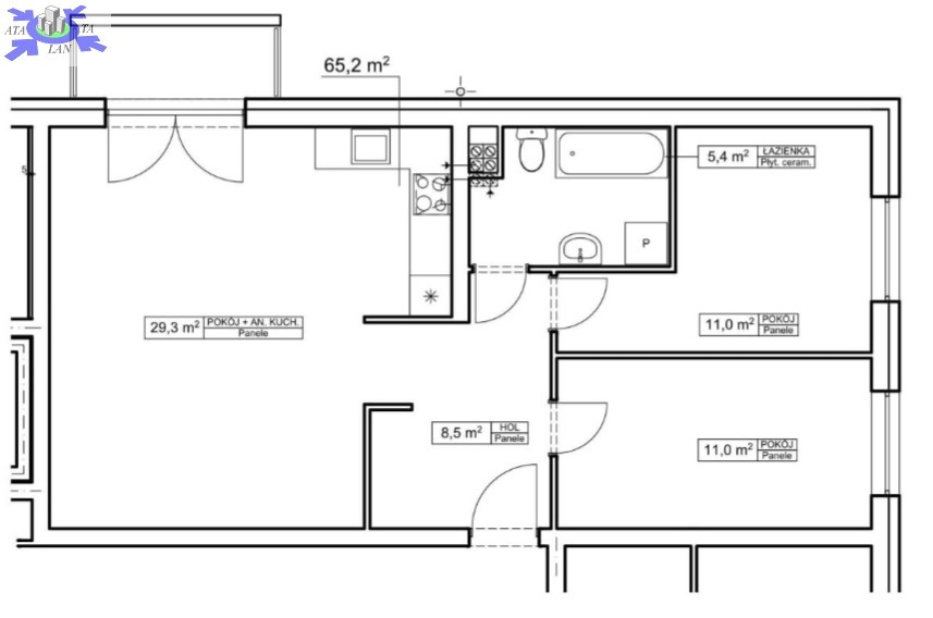 Oferujemy Państwu przestronne mieszkanie z balkonem o powierzchni 65,2 m2, znajdujące się na pierwszym piętrze nowoczesnego budynku. Lokal jest w stanie deweloperskim, co daje możliwość własnej aranżacji wnętrz.