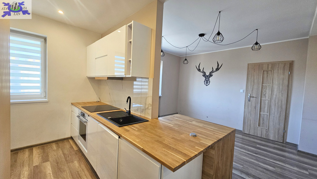 Salon jest miejscem, w którym można naprawdę odpocząć. Sprawdzi się zarówno na spokojne wieczory, jak i spotkania z bliskimi. Obok znajduje się sypialnia z dużą szafą w zabudowie, która porządkuje przestrzeń i pozwala zachować wnętrze w harmonii. Kuchnia jest w pełni umeblowana i wyposażona w sprzęt AGD - gotowa do użytku od pierwszego dnia. Całość uzupełnia łazienka z prysznicem oraz praktyczny korytarz