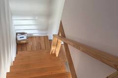 Na parterze położone aneks kuchenny i łazienka z toaletą. Na poddaszu są 2 pokoje i garderoba.