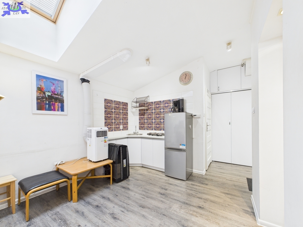 Mieszkanie powstało z adaptacji poddasza oddanej do użytkowania w 2015 roku, a znajduje się w kamienicy z około 1930 roku.