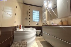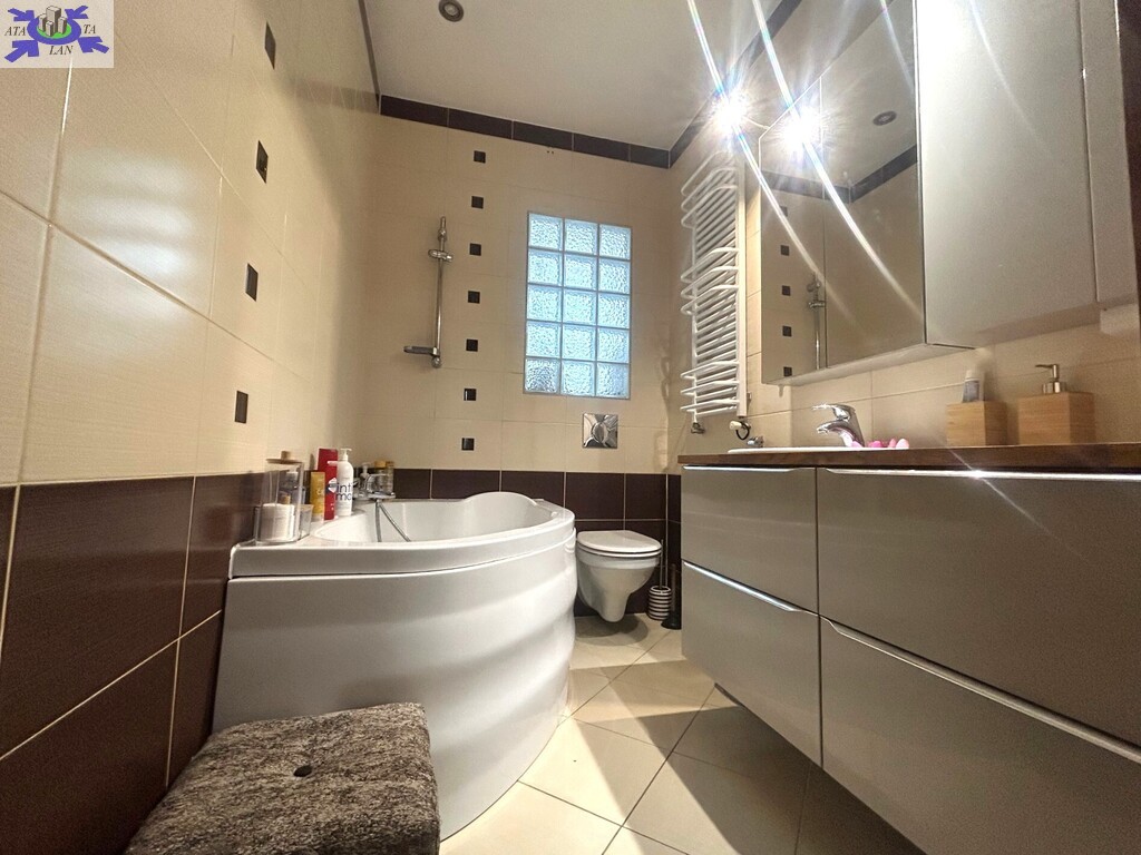 - łazienka (z toaletą, wanną, umywalką) doświetlona światłem dziennym wpadającym przez luksferę (pustki szklane)