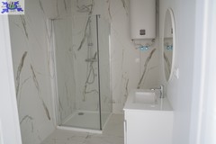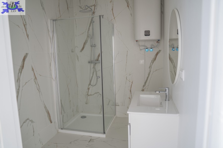 * W skład wykończenia wchodzi ściany wygładzone i pomalowane na biało, ogrzewanie podłogowe elektryczne - maty grzewcze, panele w salonie i sypialni, drzwi do sypialni i łazienki w kolorze białym, oświetlenie, łazienka w pełni wykończona kafle, umywalka z szafką, lustro, wc, kabina prysznicowa, piec elektryczny do ogrzewania ciepłej wody. Cena nie obejmuje zabudowy kuchni oraz mebli pokojowych.