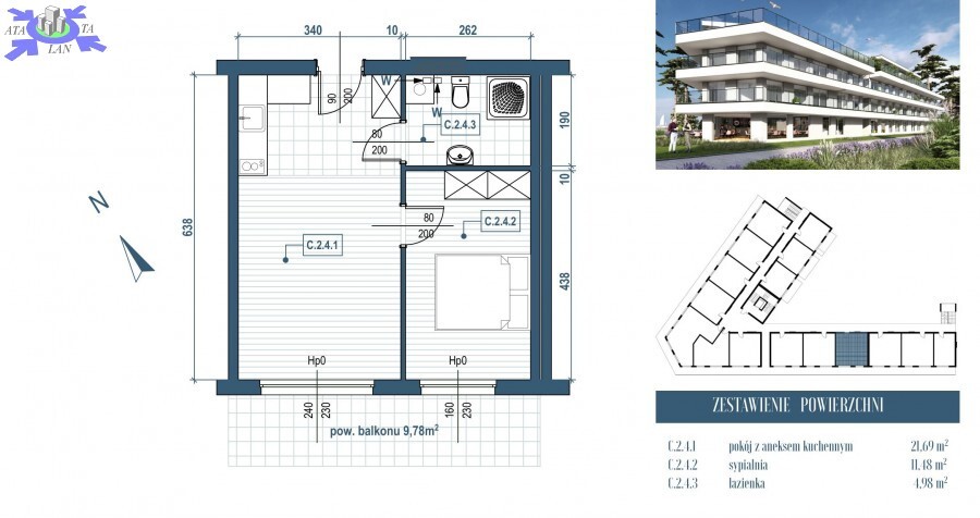 Podana cena apartamentu jest ceną netto, należy doliczyć podatek VAT 23%.