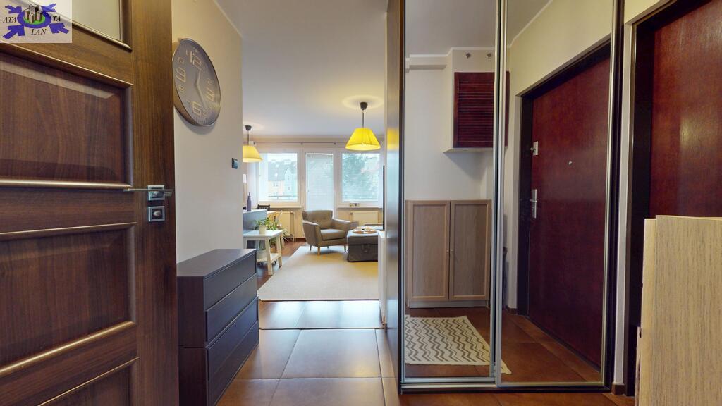 Mieszkanie jest jasne i dobrze nasłonecznione, idealnie położone względem stron świata. Salon z balkonem od strony południowo- zachodniej, sypialnia od wschodu. Lokal zaaranżowany i wykończony ze smakiem. Podłogi w pokojach wyłożone ładnymi panelami a w aneksie kuchennym i korytarzu kaflami. Ściany gładkie malowane. Komfortowa łazienka z prysznicem i miejscem na pralkę, wykończona eleganckimi kaflami. W korytarzu pojemna szafa w zabudowie, drzwi antywłamaniowe, okna PCV. Ogrzewanie i ciepła woda z energooszczędnego pieca gazowego marki Vaillant.