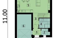 Na parterze salon z wyjściem na taras oraz ogródek, kuchnia, WC , schowek ,wiatrołap oraz garażu ok 18,5m2