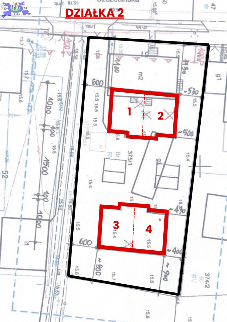 Docelowo inwestycja składać się będzie z czterech domów położonych na dwóch działkach (1 i 2) w zabudowie szeregowej po 2 segmenty. (Łącznie 8 szeregowców)