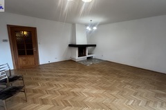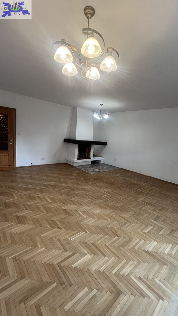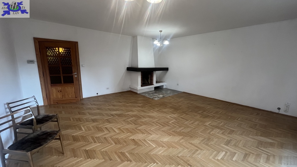 W salonie kominek ,na podłogach parkiet dębowy ,ściany gładzone pomalowane.