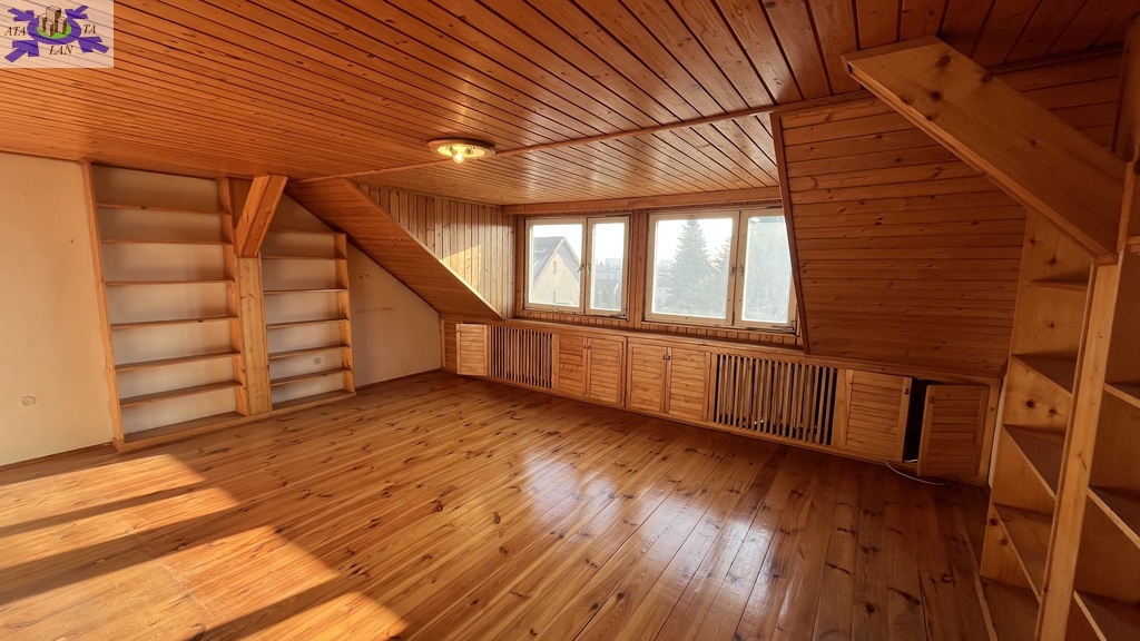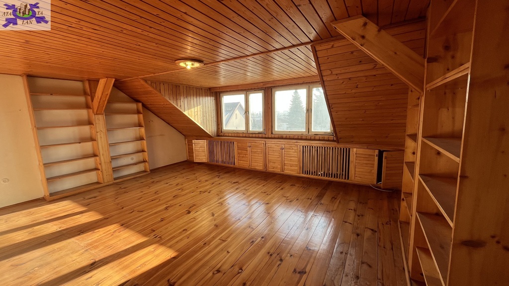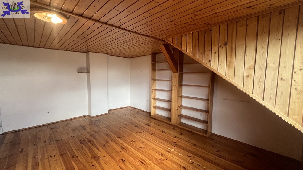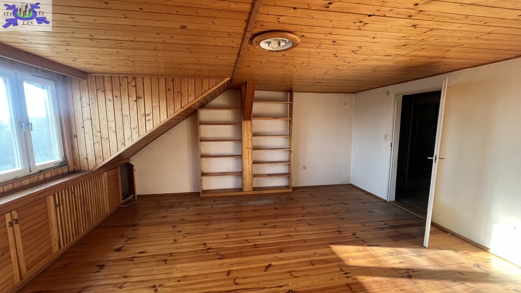 Na poddaszu przestronny pokój z widokiem na ogród oraz dwa pomieszczenia do zagospodarowania np. na pokoje lub przeznaczyć na łazienkę lub kuchenkę , ponieważ doprowadzone są wszelkie media .