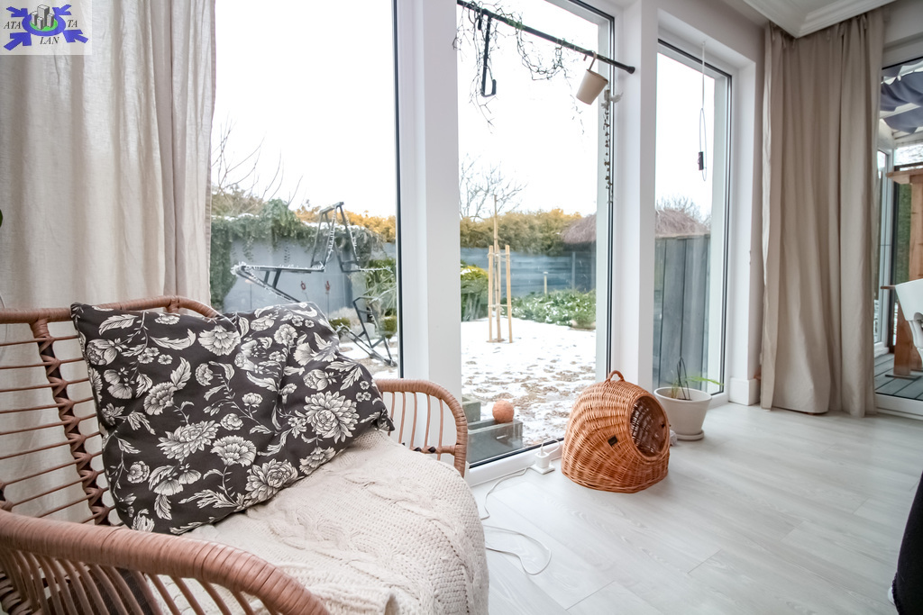 salon z dużymi przeszkleniami i pięknym widokiem na ogród , oddzielna kuchnia z przejściem do jadalni,w centralnym punkcie salonu znajduje się przestronne wejście na ogród zimowy, który zaprasza nas do wypoczynku i chwili relaksu z dala od zgiełku miasta- zachowując dużą prywatność oraz ciszę. piec gazowy będący głownym źródłem ciepła, zainstalowanae zostały panele fotowoltaicznedodatkowym źródłem ciepła może być kominek znajdujący się w salonie