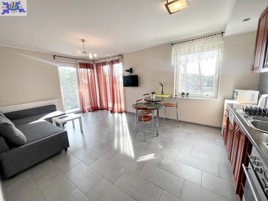 z przedpokoju, łazienki z kabiną, sypialni, salonu z aneksem kuchennym.Z salonu wyjście na balkon. Osiedle znakomicie zlokalizowane, w bardzo urokliwej lokalizacji, pięknie zagospodarowane, znajduje się ok 200 m od morza w otoczeniu zieleni, co daje niesamowity klimat, urok i zapewnia znakomity wypoczynek. W budynku jest cichobieżna winda.Blisko do centrum. Apartament całkowicie wyposażony z możliwością mieszkania cały rok, meble ruchome do ustalenia. Istnieje możliwość wynajmu miejsca postojowego. Bardzo niskie koszty utrzymania ok 350 zł czynszu plus prąd według zużycia. Serdecznie polecam i zapraszam na prezentację.