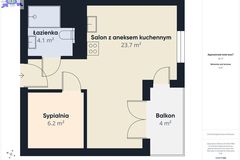 salon z aneksem kuchennym oraz wyjściem na balkon,kuchnia w zabudowie, w pełni wyposażona,sypialnia z zabudowami wykonanymi na wymiar,łazienka z WC oraz kabiną prysznicową.