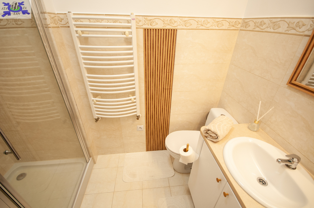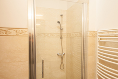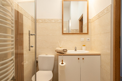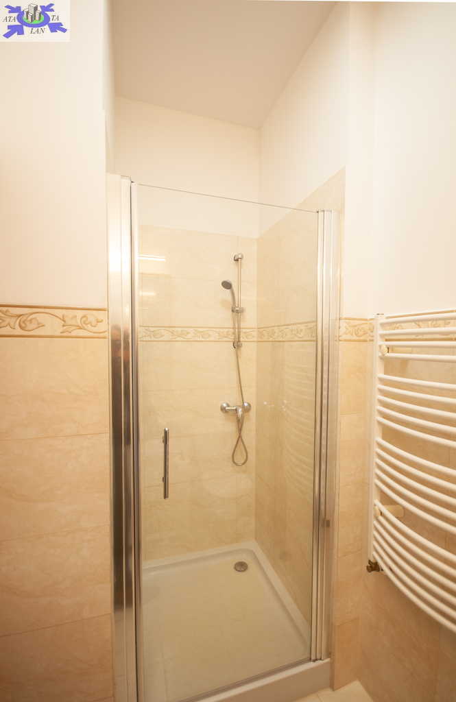 -odnowionej łazienki z kabiną prysznicową, razem z WC,