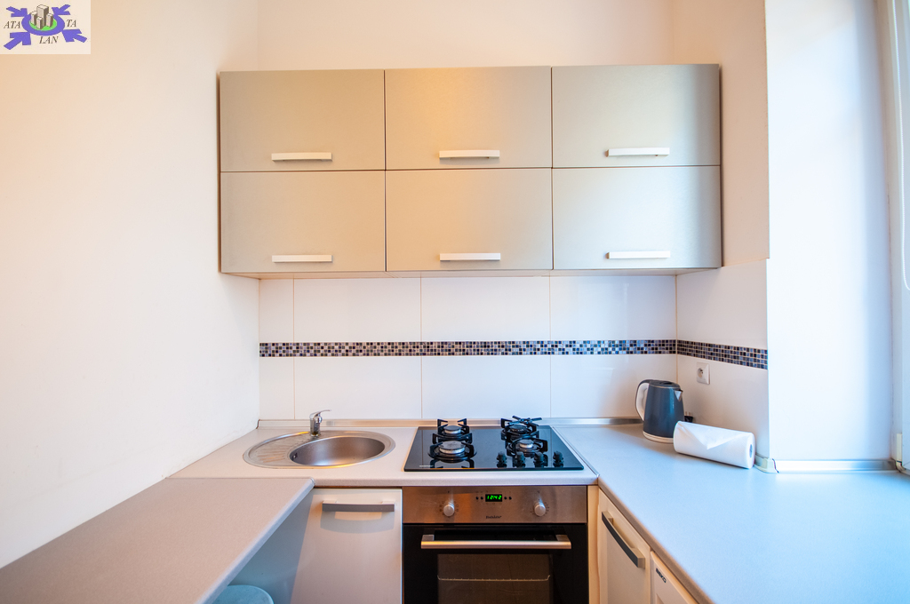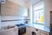 -oddzielnej kuchni 5m kw. z oknem PCV, wraz z zabudową, lodówko-zamrażarką, piekarnikiem, kuchenką gazową i pralką,