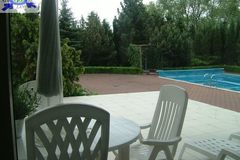 Dom posadowiony na dużej 2800m2 działce obsadzonej 3 tysiącami drzew i krzewów w tym 70 letnie cedry i świerki. Przy domu podgrzewany basen o wymiarach 6x 10 m i 1,5 m głebokości. W dalszej części ogrodu miejsce na grill,na podjeździe zadaszone 2 miejsca parkingowe.